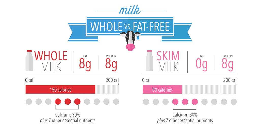 Regardless of whether chosen skim or whole milk, the calcium and nutrient content is more or less the same.